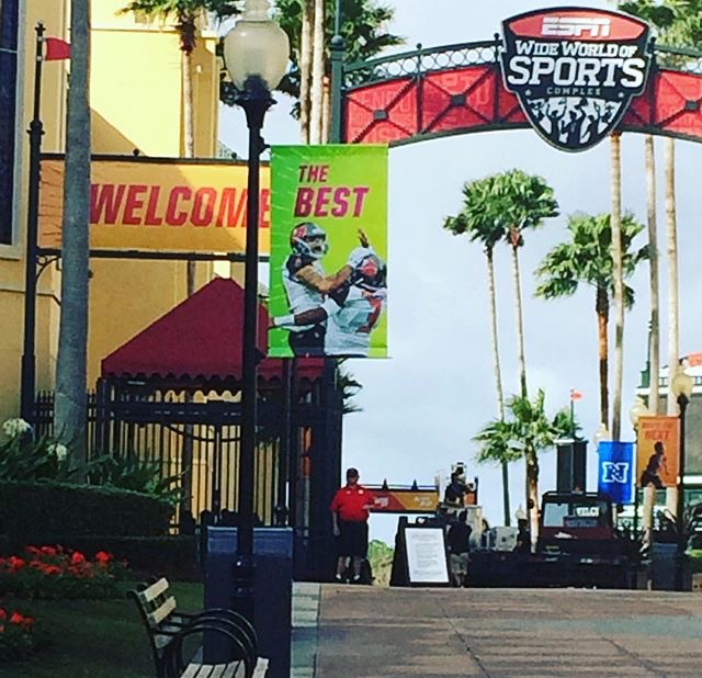 We walked with our gear around the ESPN globe and through the gates. The complex was HUGE. If you ever doubt the profitability of sports you should check this place out. I’m fairly certain it has over 25 different fields. It has tents, stadiums, and restaurants as well. We were directed by security to where our practice field was.